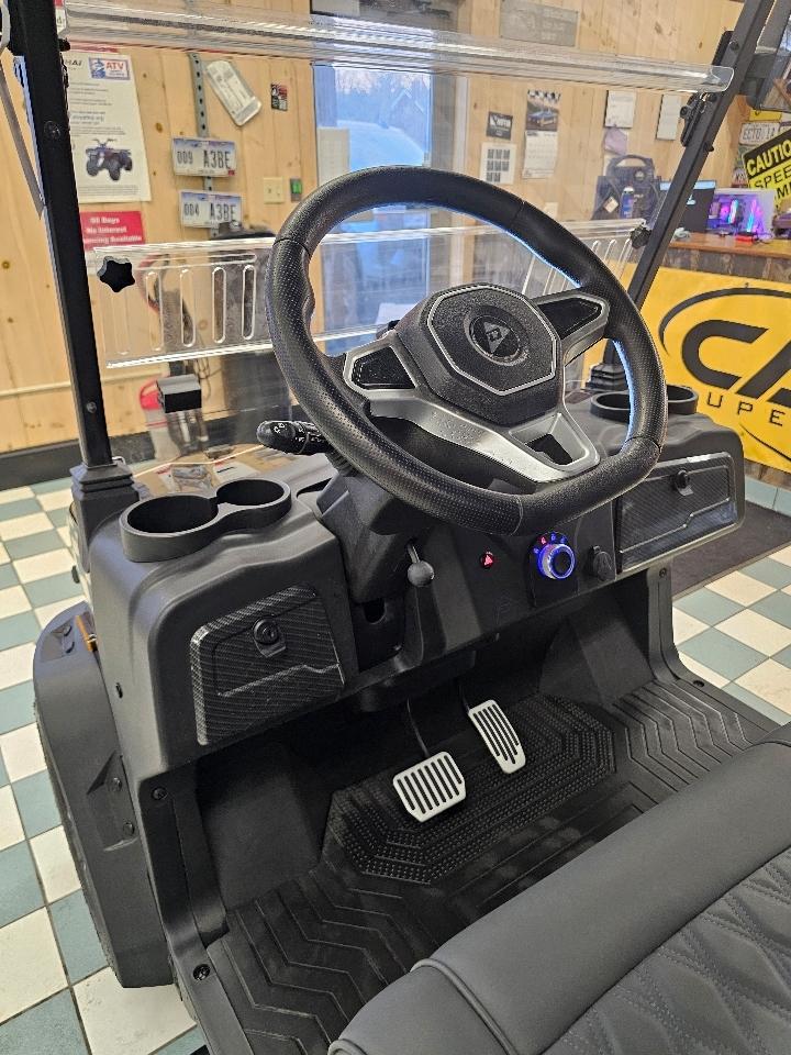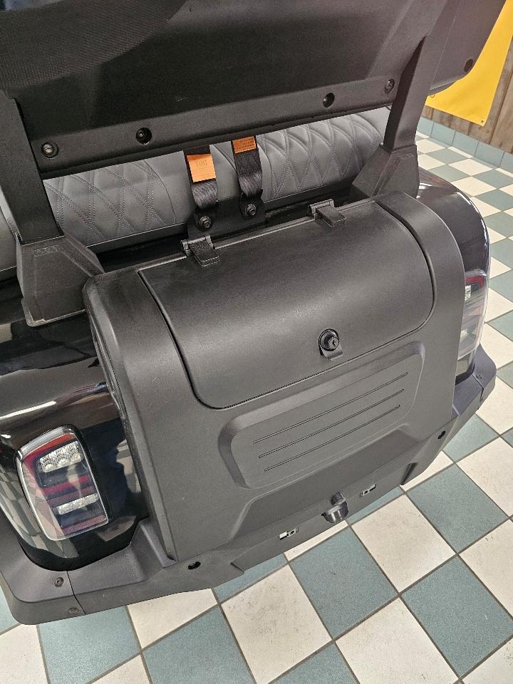 • Vented Windshield Horn Rear View Mirror Side Mirrors Backup Camera License Plate Light Luxary Package: 9 Touch Screen Speedometer Battery Charge Indicator Bluetooth Hands Free Phone Apple Car Play (wireless) Android Auto (wireless) FM Radio Rear Soundbar and Two Under Dash Speakers Tilt Steering Upgraded Seats Adjustable Arm Rests